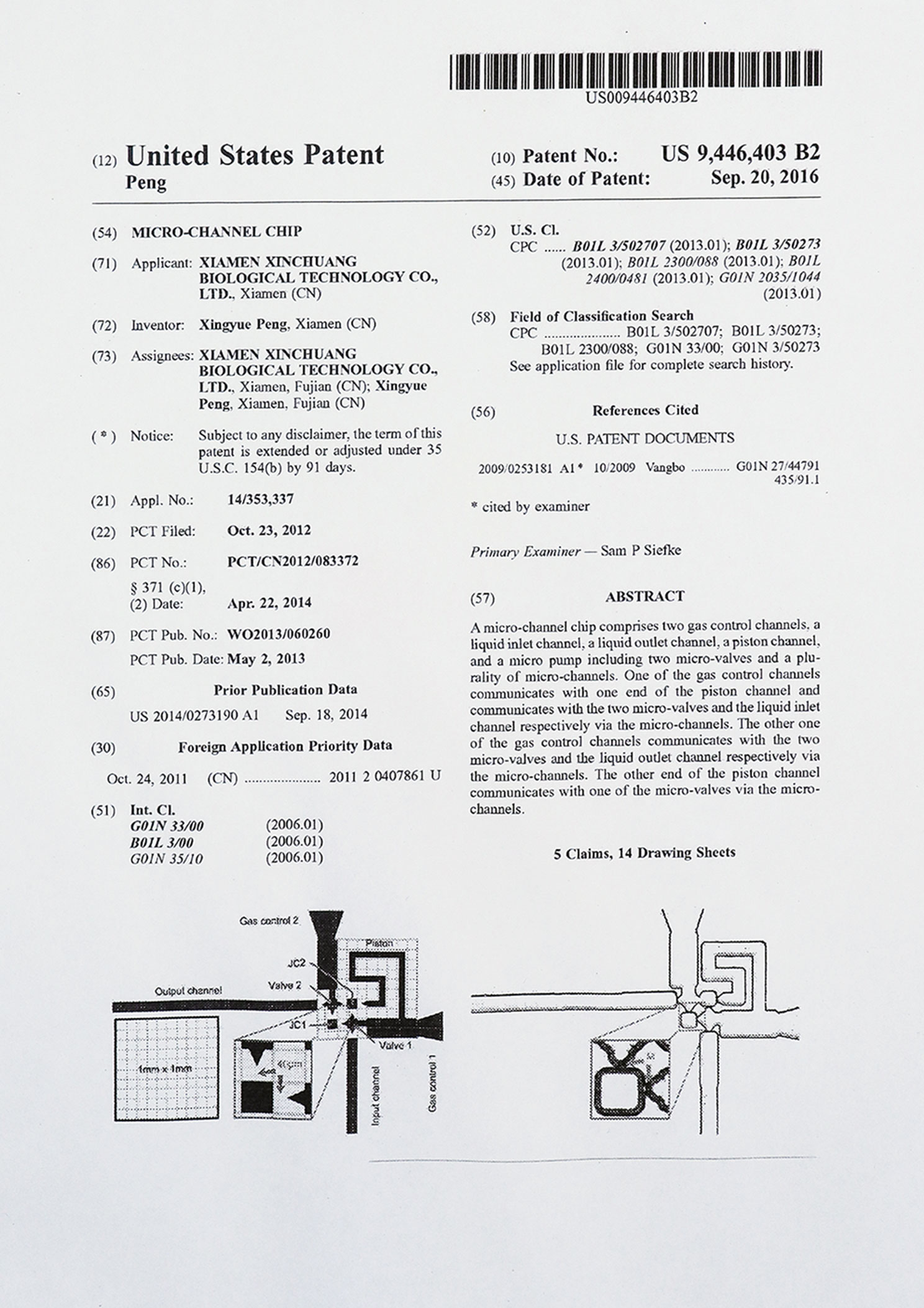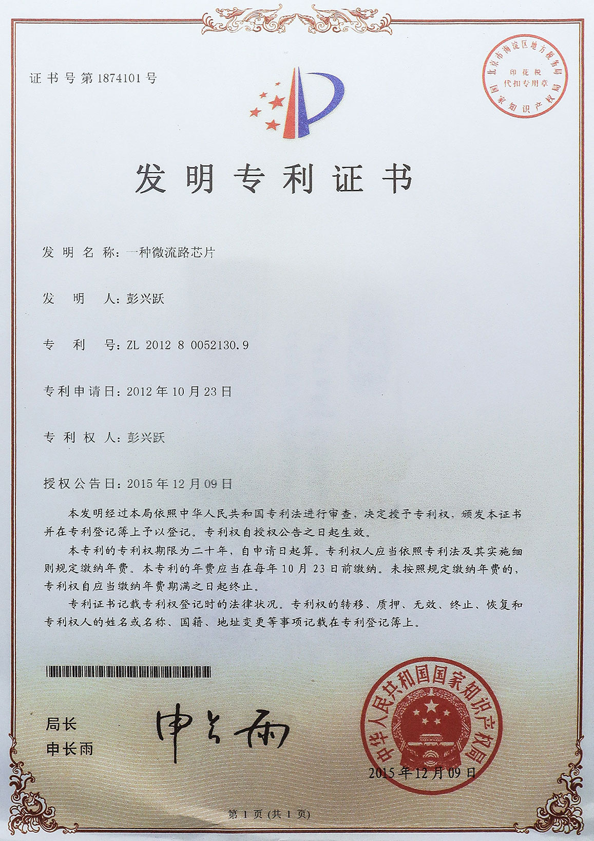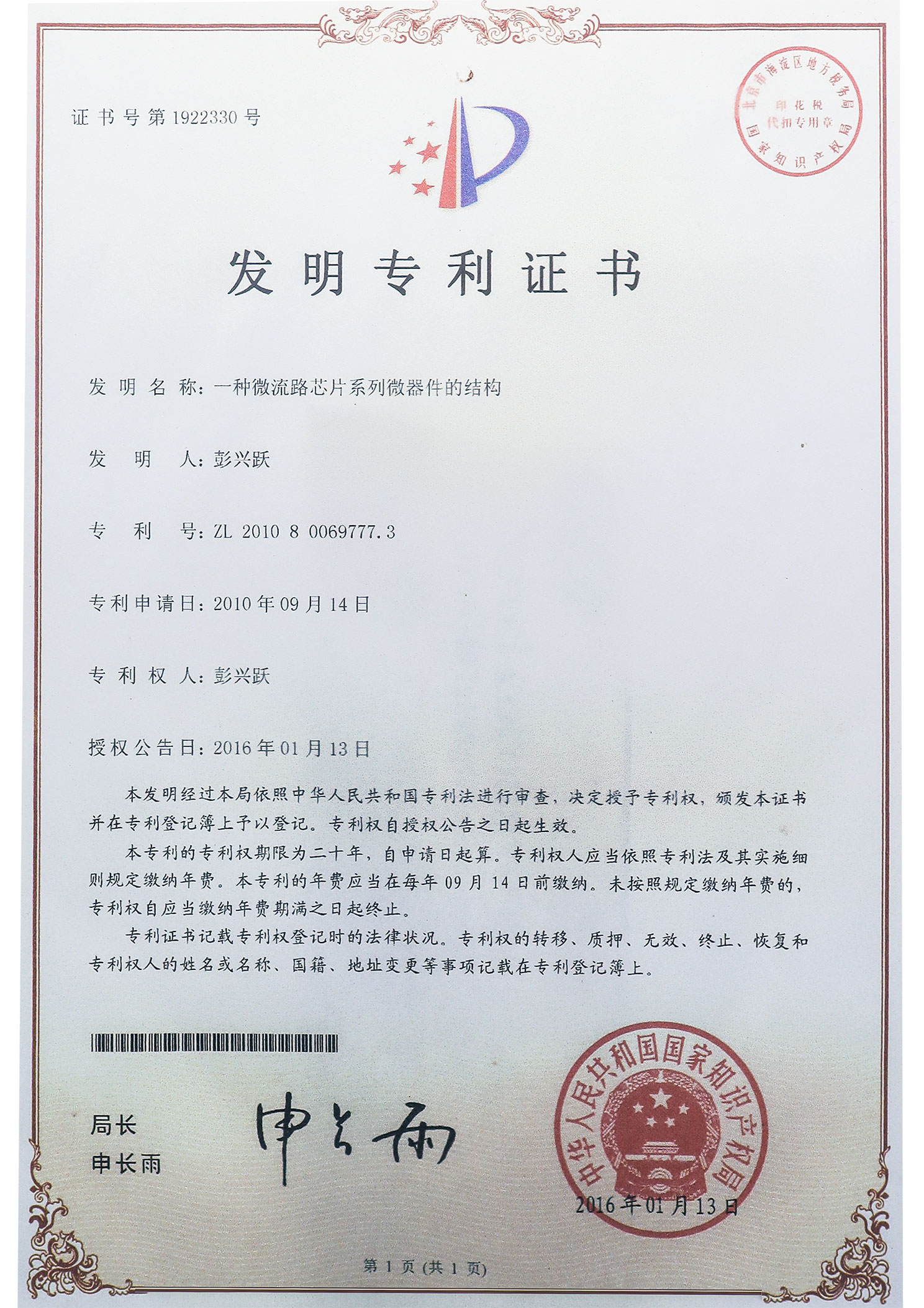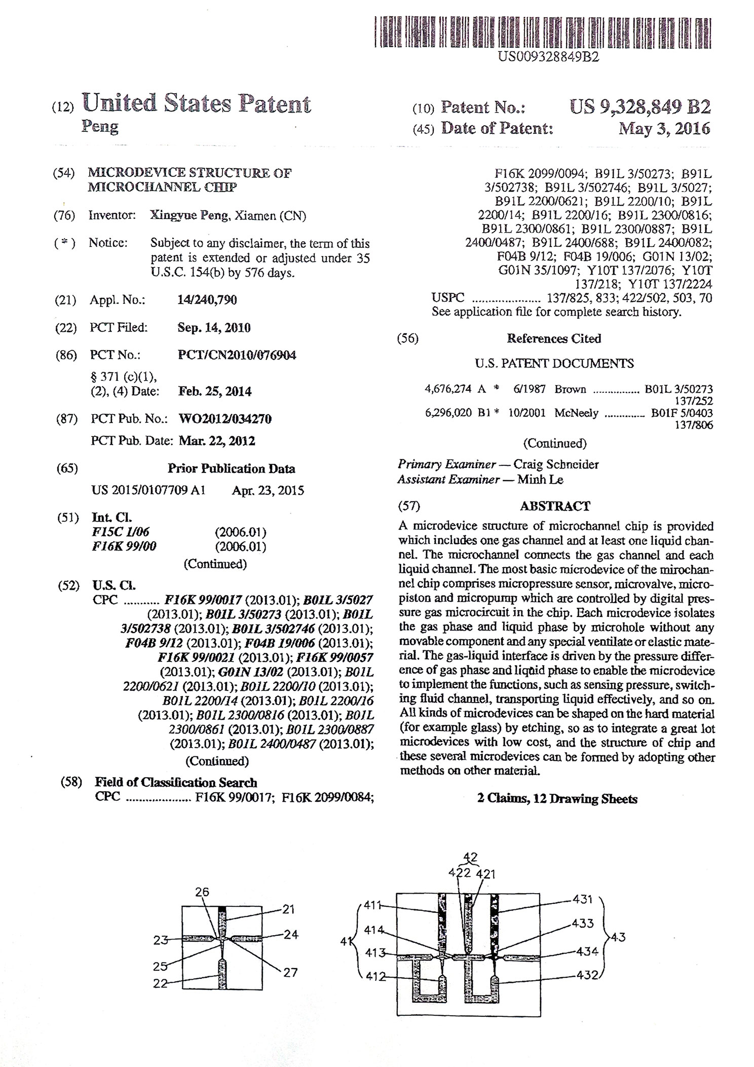 美國發(fā)明專利(微通道芯片的微器件結(jié)構(gòu))