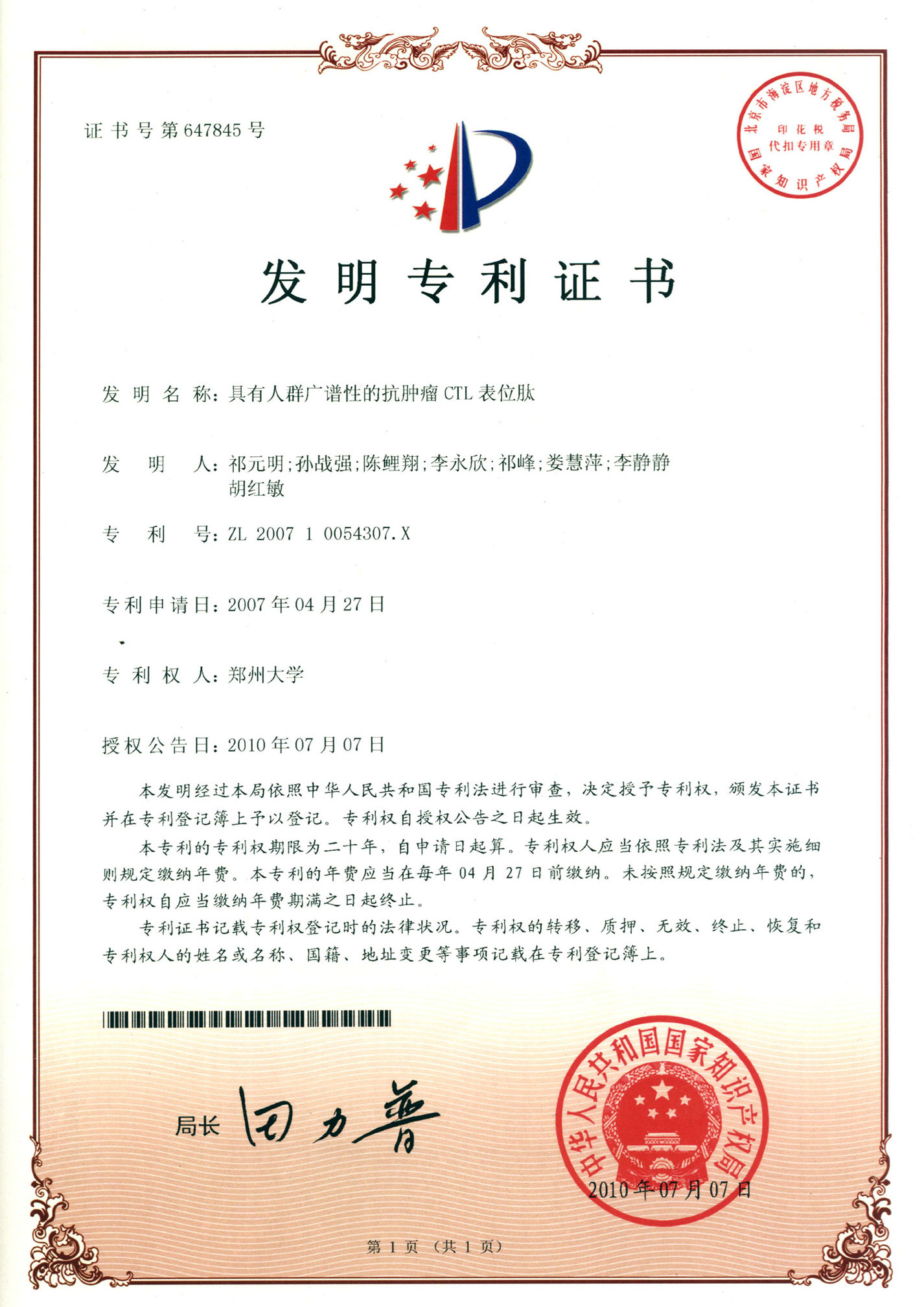 具有人群廣譜性的抗腫瘤CTL表位肽