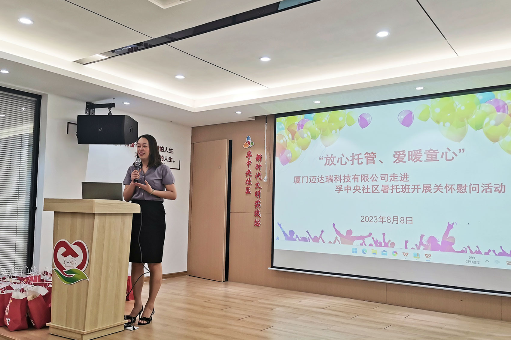 云天收夏色,木葉動秋聲,8月8日下午,作為孚中央社區(qū)共建企業(yè),廈門邁達(dá)瑞科技有限公司走進(jìn)孚中央社區(qū)暑期愛心托管班,開展“放心托管·愛暖童心”關(guān)懷慰問活動。