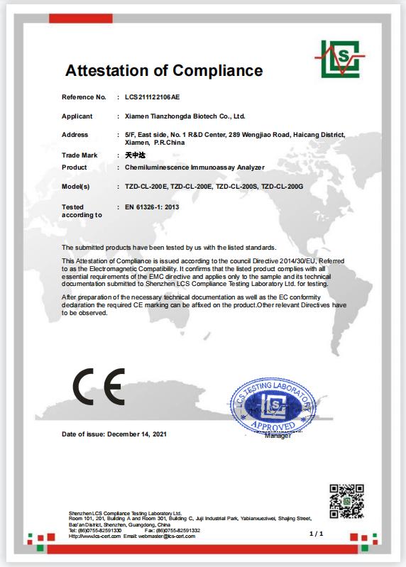 廈門邁達(dá)瑞科技有限公司2022開年喜訊不斷,近日邁達(dá)瑞旗下子公司廈門天中達(dá)生物科技有限公司自主研發(fā)的半自動化學(xué)發(fā)光免疫分析儀順利取得歐洲CE認(rèn)證。
